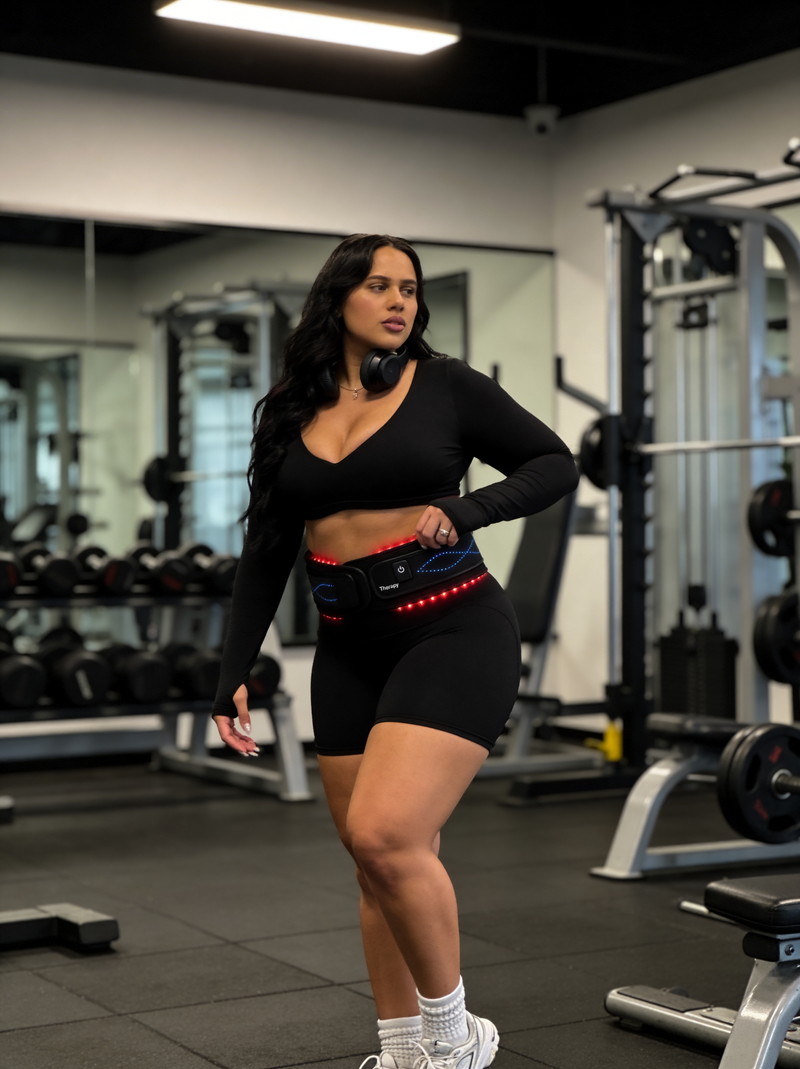Advanced red light + infrared heat technology designed to tighten skin, reduce bloating, and contour your waist without surgery.